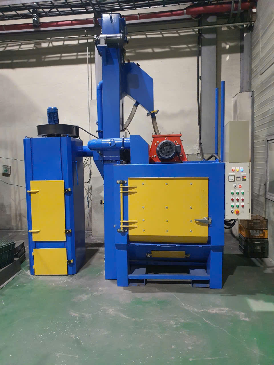 Máy bắn bi dạng thùng đảo là giải pháp xử lý bề mặt không thể thiếu trong các xưởng đúc. Máy sử dụng băng tải đảo sản phẩm liên tục để bề mặt vật đúc được làm sạch đồng đều. Tùy vào model máy, thiết bị này có thể xử lý từ 100 – 500 kg sản phẩm đúc trong một lần phun. Khả năng tái sử dụng hạt mài, thu hồi bụi tự động.